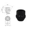 Konisk hjulmutter med 60 graders kona. Stängd ände. Gänga M12x1,25. Totalhöjd 34 mm. Ytbehandling svartförzinkad.