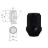 Konisk hjulmutter med 60 graders kona. Stängd ände, skyddar gängorna mot smuts. Gänga M12x1,25. Totalhöjd 34 mm. Gänglängd 26mm. Nyckelgrepp 19mm. Ytbehandling svartförzinkad.