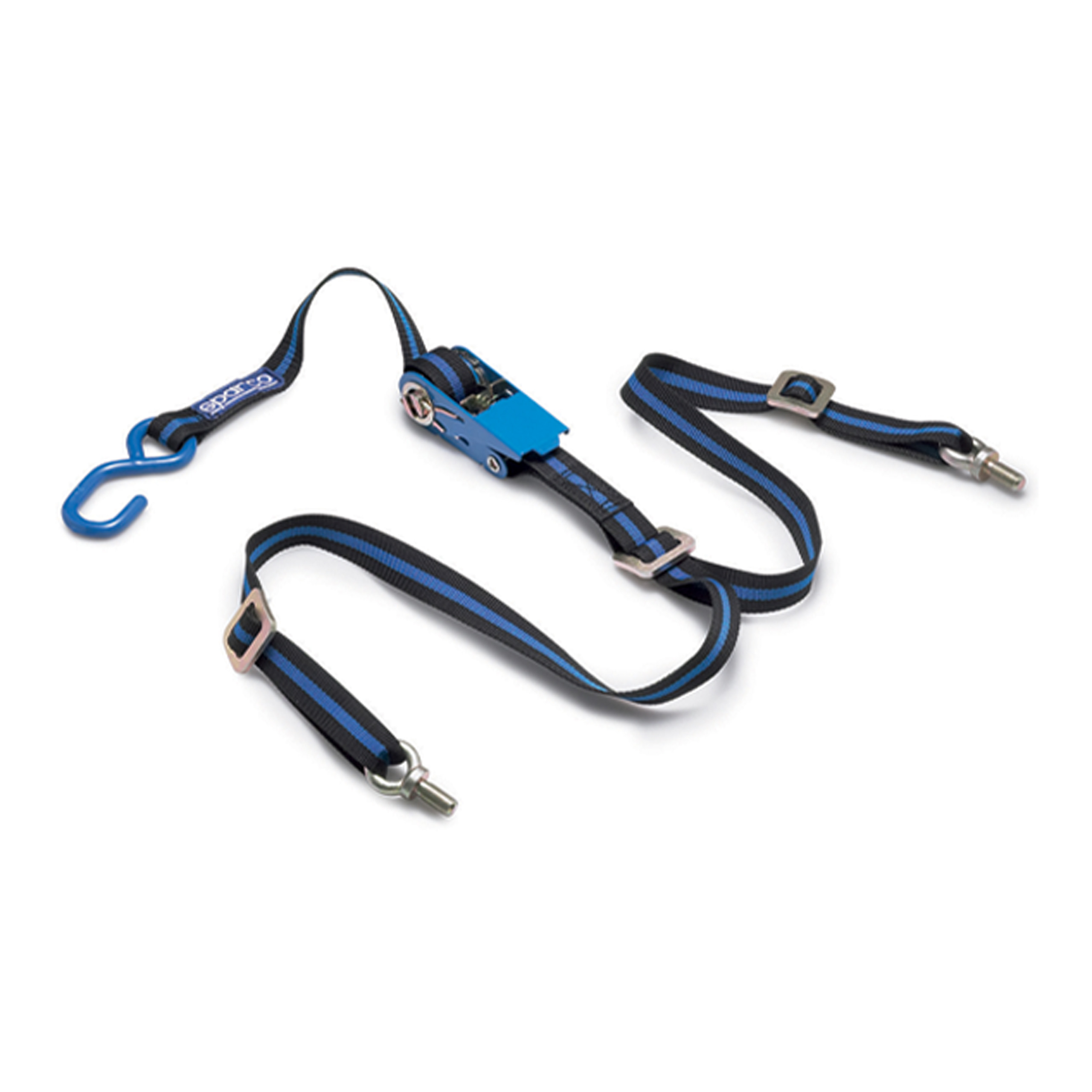 Sparco universal reservhjulshållare, fastsättning med 3 remmar och spännband. Öglebult och fästplåtar ingår.