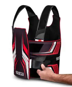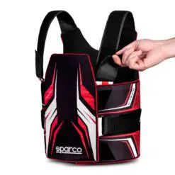 Sparco revbensskydd K-Track för karting. Ett flexibelt och ergonomiskt skydd som anpassar sig efter kroppsformen när man sitter i stolen. Ett lätt och enkelt justerbart skydd. Skyddet kan anpassas med tryck enligt egna önskemål. Finns i både barn och vuxenstorlekar. Godkänt enligt FIA 8870-2018.