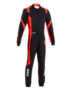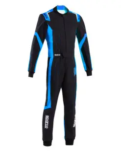 Sparco kartingoverall Thunder Advanced. Prisvärd instegsmodell som även finns i barnstorlekar. Ventilerande tyg under armar och insida ben låter overallen andas och kondensera svett för bättre komfort.