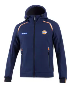 Sparco Softshell luvjacka Gulf edition, tillverkad i 100% Polyester. Vattenavvisande och vindtät lättvikts Höst/Vår jacka med fleece foder invändigt. Två sidfickor med blixtlås. Elastiska muffar runt handlederna.