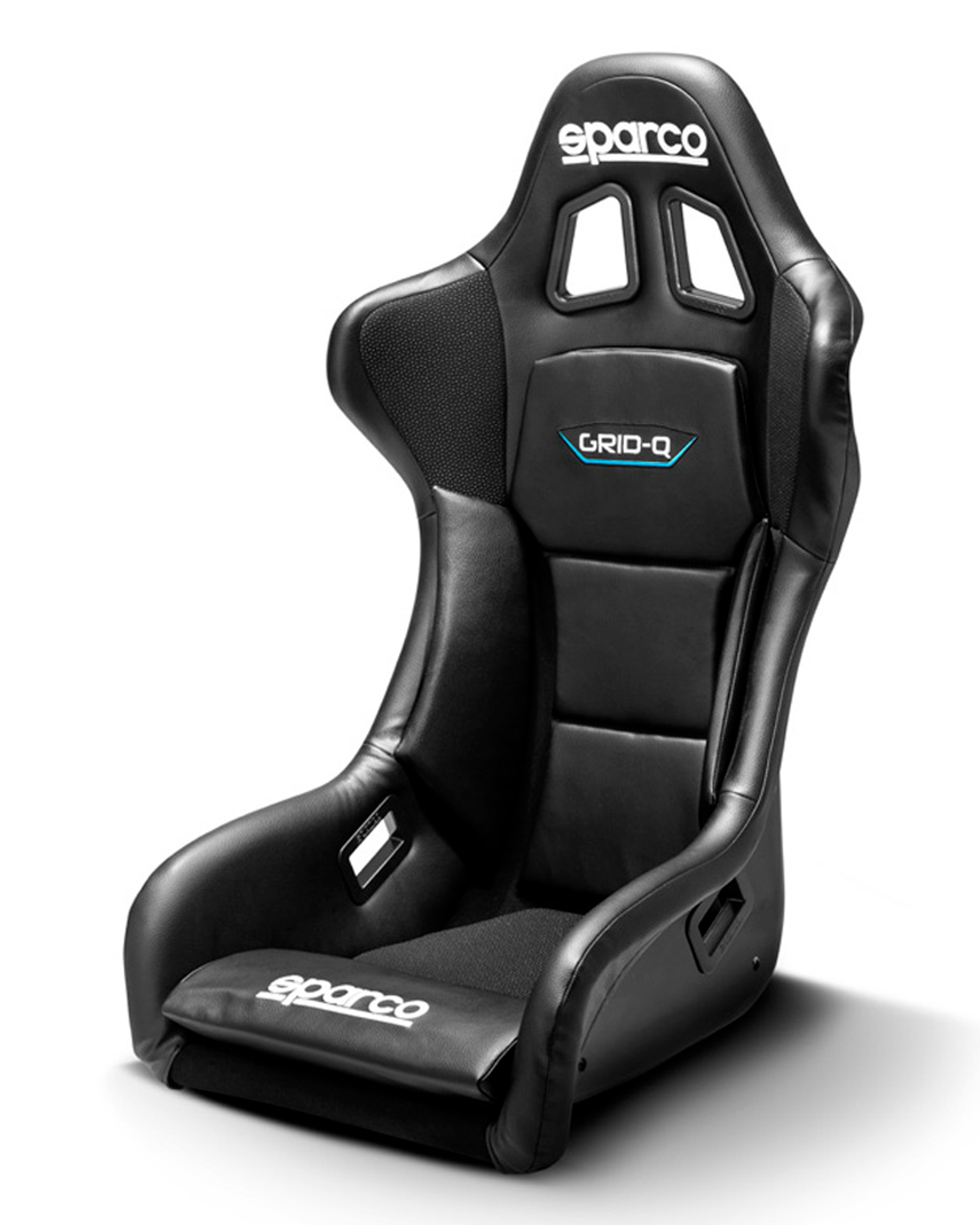 Sparco Grid Q glasfiberstol klädd i sky. Uppdaterad med nya QRT tekniken som med bibehållen styrka ger ett lättare och mer slimmat skal, en fördel i trånga bilar. Stolen är utformad med höga sidor vid benen och bra utrymme att röra axlarna. Stoppningen sitter på kardborreband och kan justeras. Uttag för 6-punkts bälte. Hansförberedd. Sidomontering med cc 290mm mellan skruvarna. Vikt: 7,3 Kg. Storlek medium. FIA 8855-1999 godkänd.