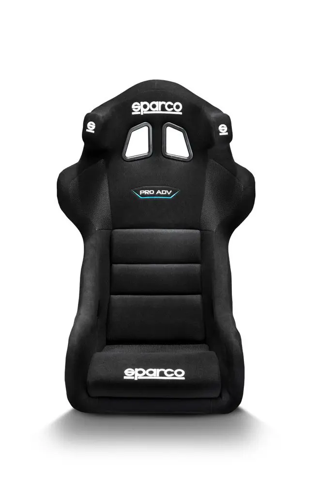 Sparco Pro ADV QRT glasfiberstol. Uppdaterad med nya QRT tekniken som med bibehållen styrka ger ett lättare och mer slimmat skal, en fördel i trånga bilar. Höga sidor vid benen ger bra stöd. Integrerat sido/huvudskydd. Antiglid-mtrl. i botten och vid axlarna. Ny två-delad kudde. Uttag för 6-punkts bälte. Sidomontering med cc 290mm mellan skruvarna. Hansförberedd.Vikt: 9.3 Kg. Storlek medium/large. FIA 8855-1999 godkänd.