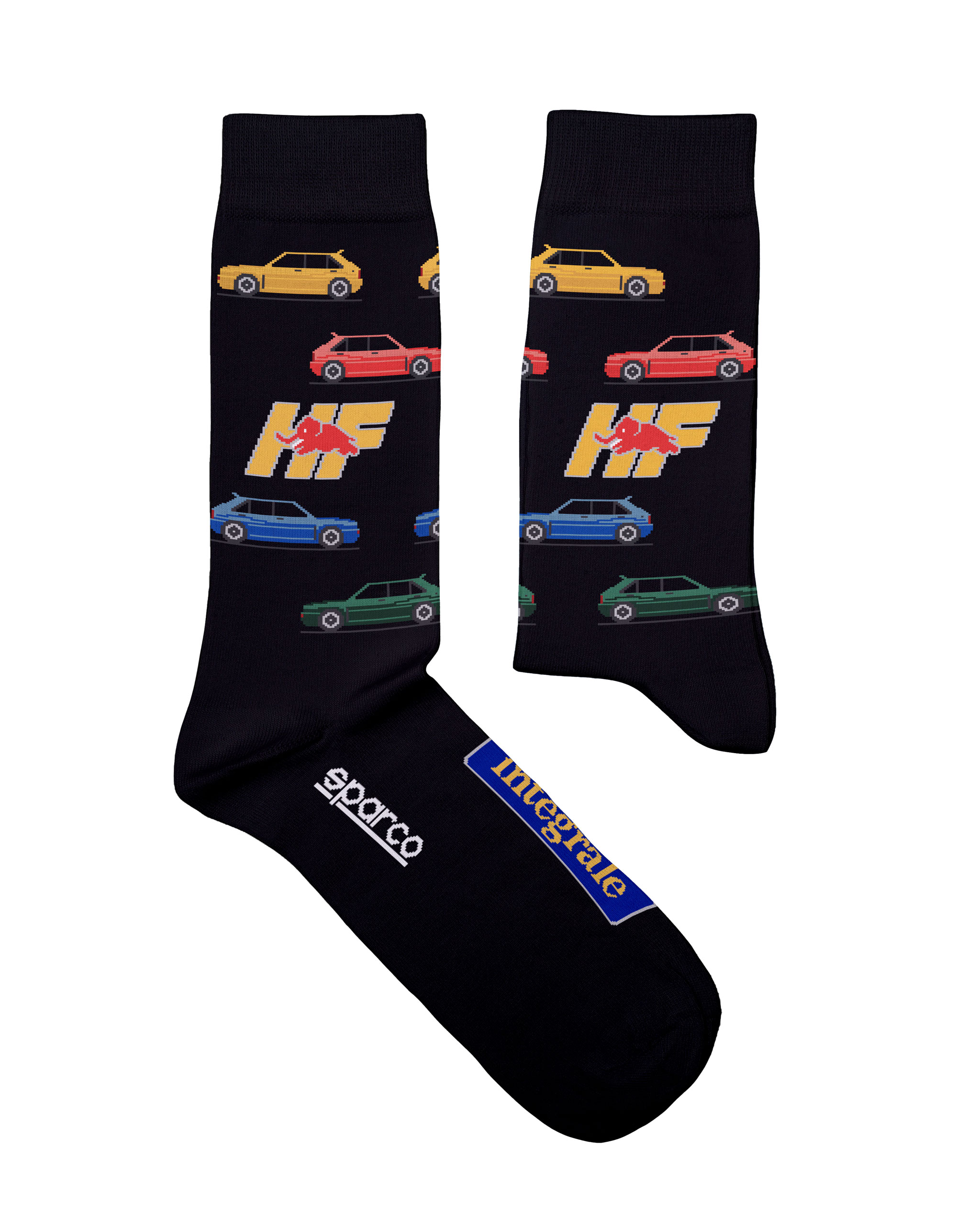 Sparco Strumpor Delta HF. Socka med Lancia Delta HF mönster. Tillverkad av mjuk combed cotton 80%, Polyamid 17% och Elastane 3%. Storlek 41/46