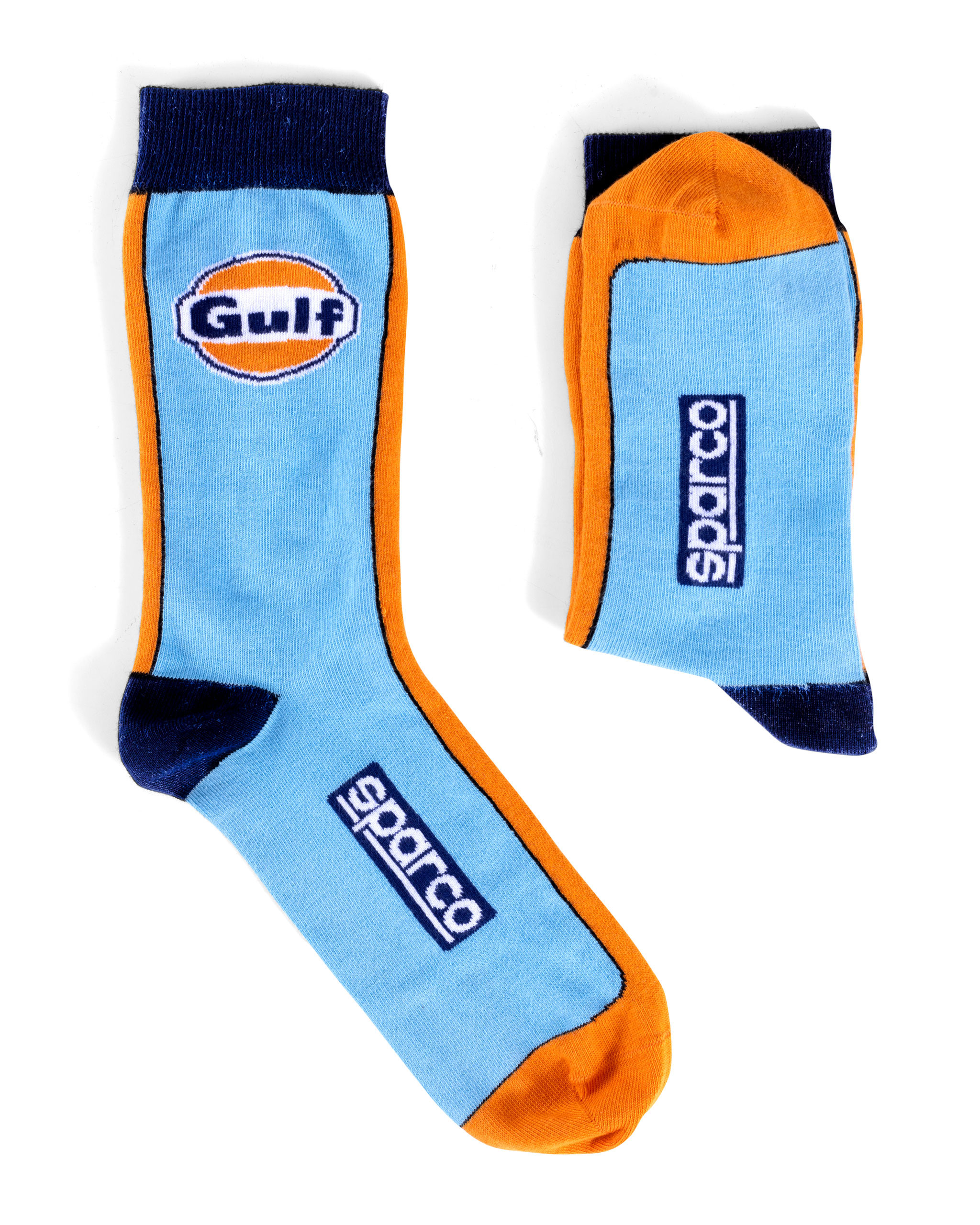 Sparco Strumpor Gulf. Socka i blå och orange med Gulf och Sparco logotype. Tillverkad av mjuk combed cotton 80%, Polyamid 17% och Elastane 3%.