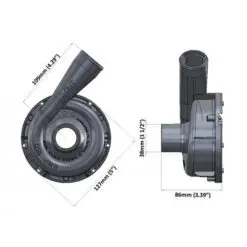 Elektrisk vattenpump från Davies Craig. Aluminiumhus. Flöde max 150 L/minut. Slanganslutning mellan 35– 51mm. Vikt på pumpen 1170 gr.